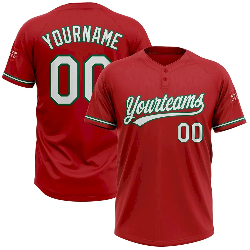 Custom Red White-Kelly Green Two-Button Unisex Softball Jersey