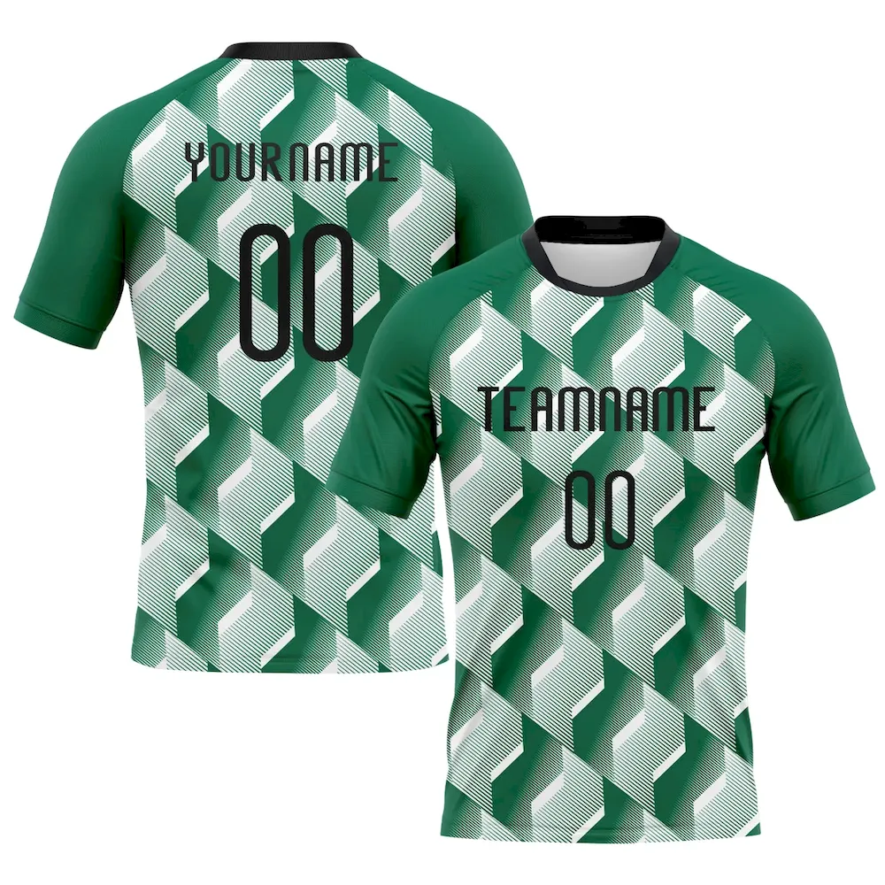 Custom Kelly Green Black-White Geometric Shape Sublimation Volleyball Uniform Jersey
