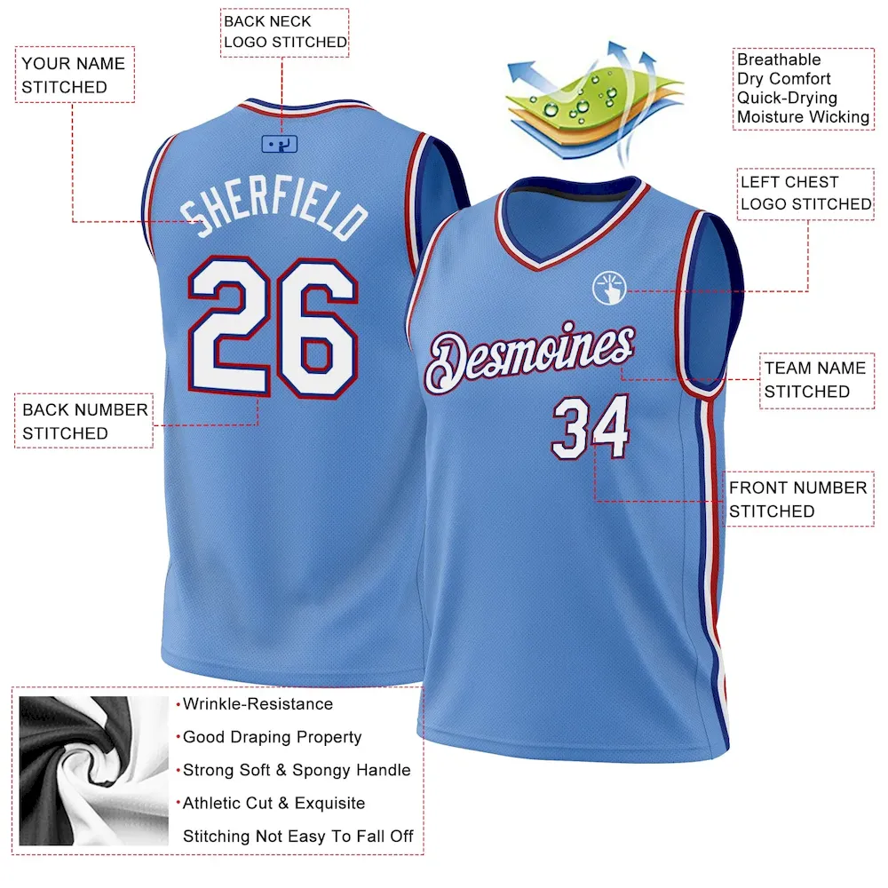 Custom Light Blue Royal-Red Authentic Throwback Basketball Jersey