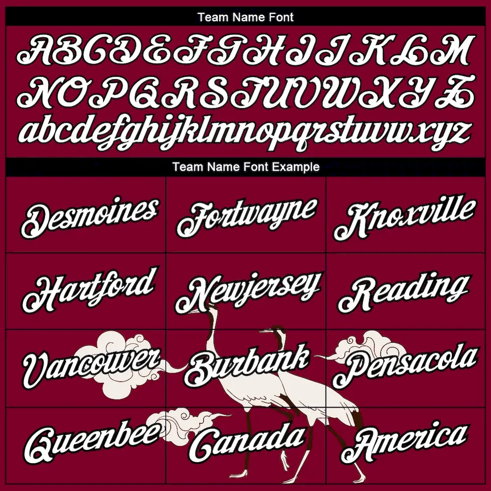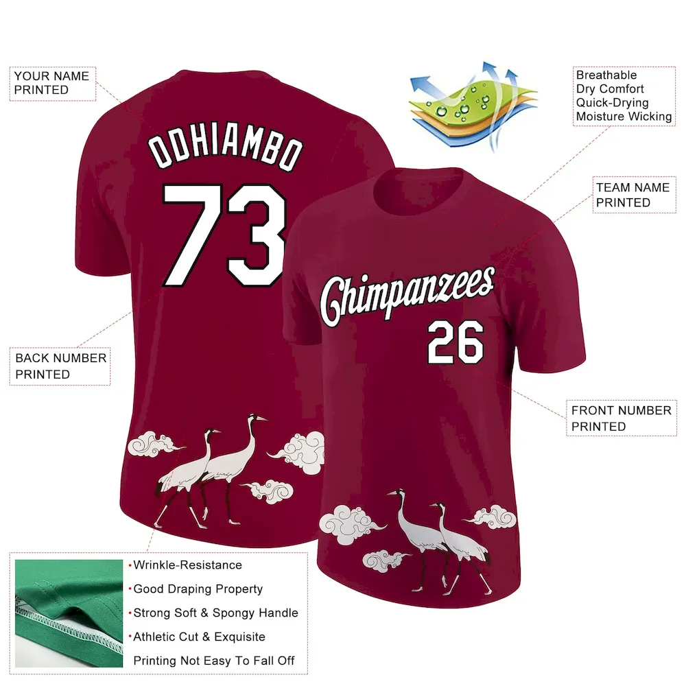 Custom Maroon White-Black 3D Pattern Design Animal Crane Performance T-Shirt