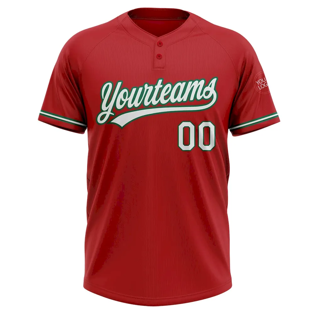 Custom Red White-Kelly Green Two-Button Unisex Softball Jersey
