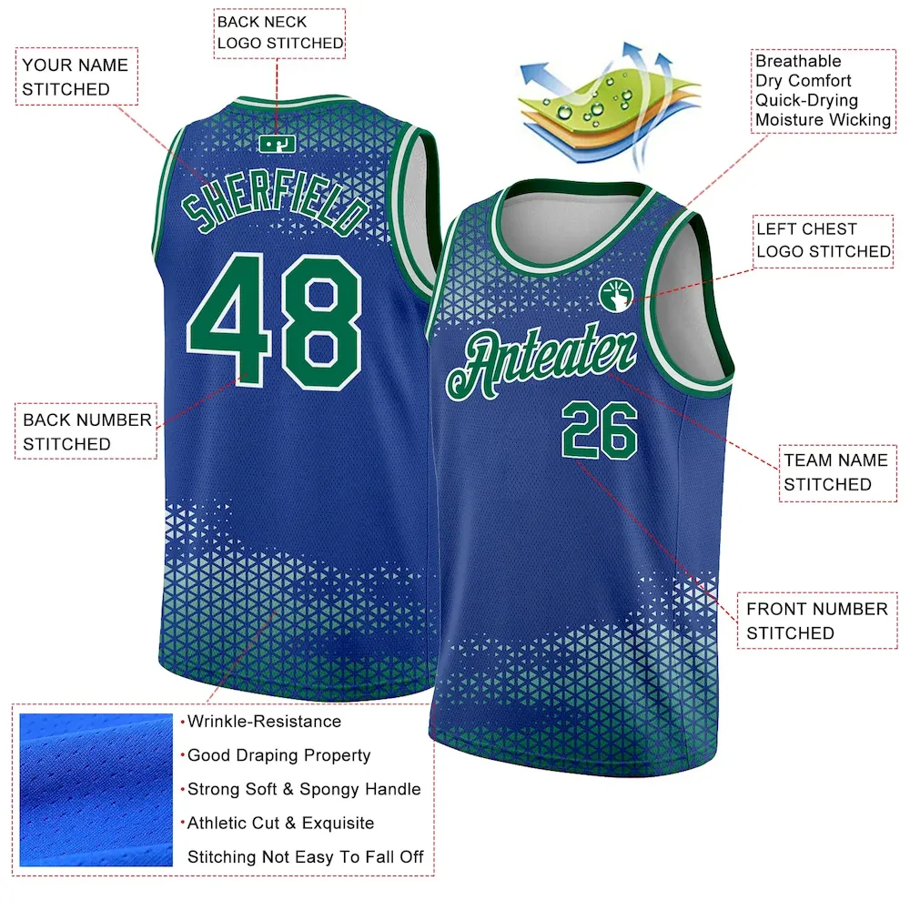 Custom Royal Kelly Green-White Triangle Shapes Authentic City Edition Basketball Jersey